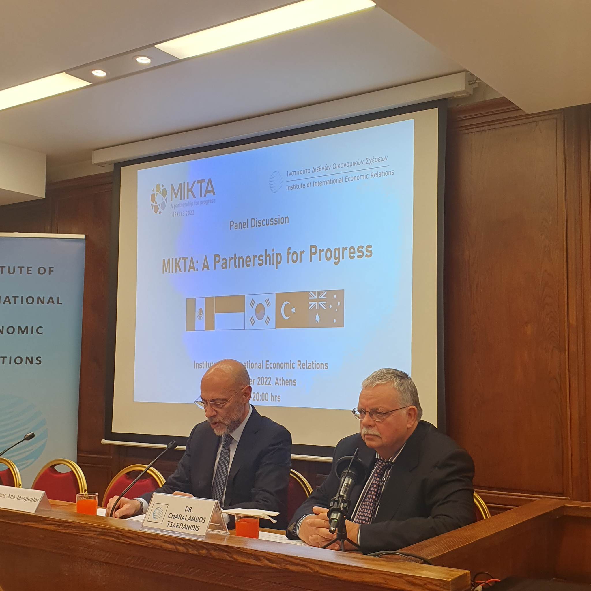 Την Παρασκευή 9.12.2022 στο Ινστιτούτο Διεθνών Οικονομικών Σχέσεων (ΙΔΟΣ) έλαβε χώρα διεθνές συνέδριο με θέμα τη δραστηριότητα της διαπεριφερειακής συνεργασίας ΜΙΚΤΑ (Μεξικό, Ινδονησία, Δημοκρατία της Κορέας, Τουρκία, Αυστραλία).