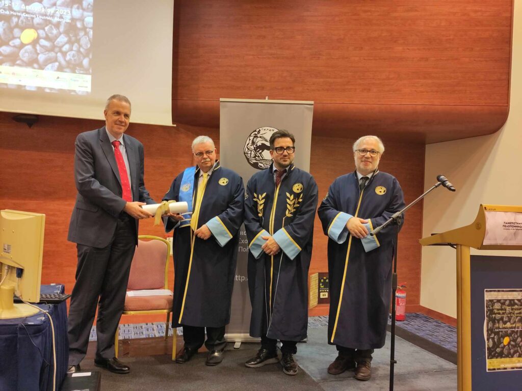 Με το πέρας της τελετής αναγόρευσης, ο Χαράλαμπος Τσαρδανίδης εξέφωνησε ομιλία με θέμα «Γεωπολιτική και η χρησιμότητα της οικονομικής διπλωματίας σήμερα».