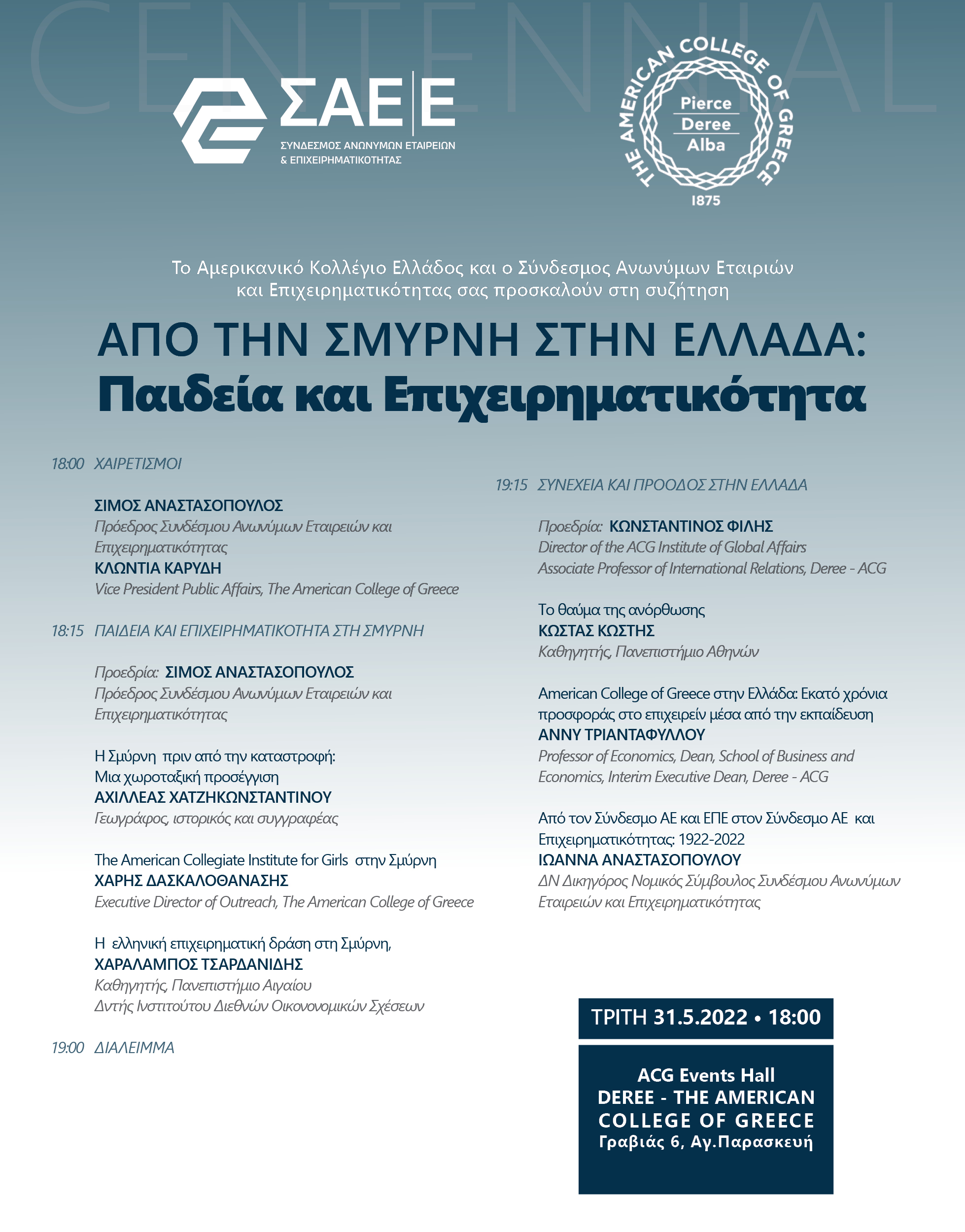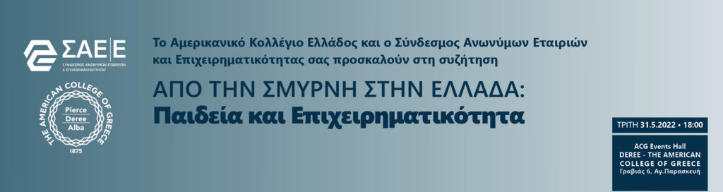 Το Αμερικανικό Κολλέγιο Ελλάδος και ο Σύνδεσμος Ανωνύμων Εταιριών και Επιχειρηματικότητας σας προσκαλούν στη συζήτηση: