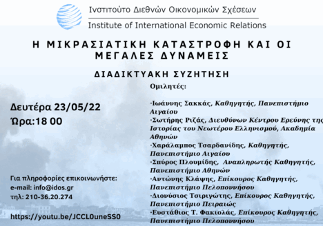 Πρόσκληση Tο Κέντρο Ανάλυσης Μεσανατολικής Πολιτικής (ΚΕ.Α.ΜΕ.Π) του Ινστιτούτου Διεθνών Οικονομικών Σχέσεων (ΙΔΟΣ) διοργανώνει συνέδριο Mare Mediterraneum Ι με θέμα: “Η Μεσόγειος και ο αραβο–περσικός Κόλπος στη σκιά του ρωσο-ουκρανικού πολέμου: οι…