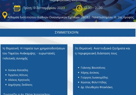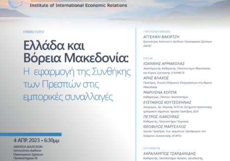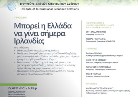 Το Ινστιτούτο Διεθνών Οικονομικών Σχέσεων, που έχει ιδρύσει ο Σύνδεσμος ΑΕ και Επιχειρηματικότητας, σε συνεργασία με το Πρόγραμμα Μεταπτυχιακών Σπουδών «Διεθνής και Ευρωπαϊκή Διακυβέρνηση και Πολιτική» του Εθνικού και Καποδιστριακού Πανεπιστημίου Αθηνών…