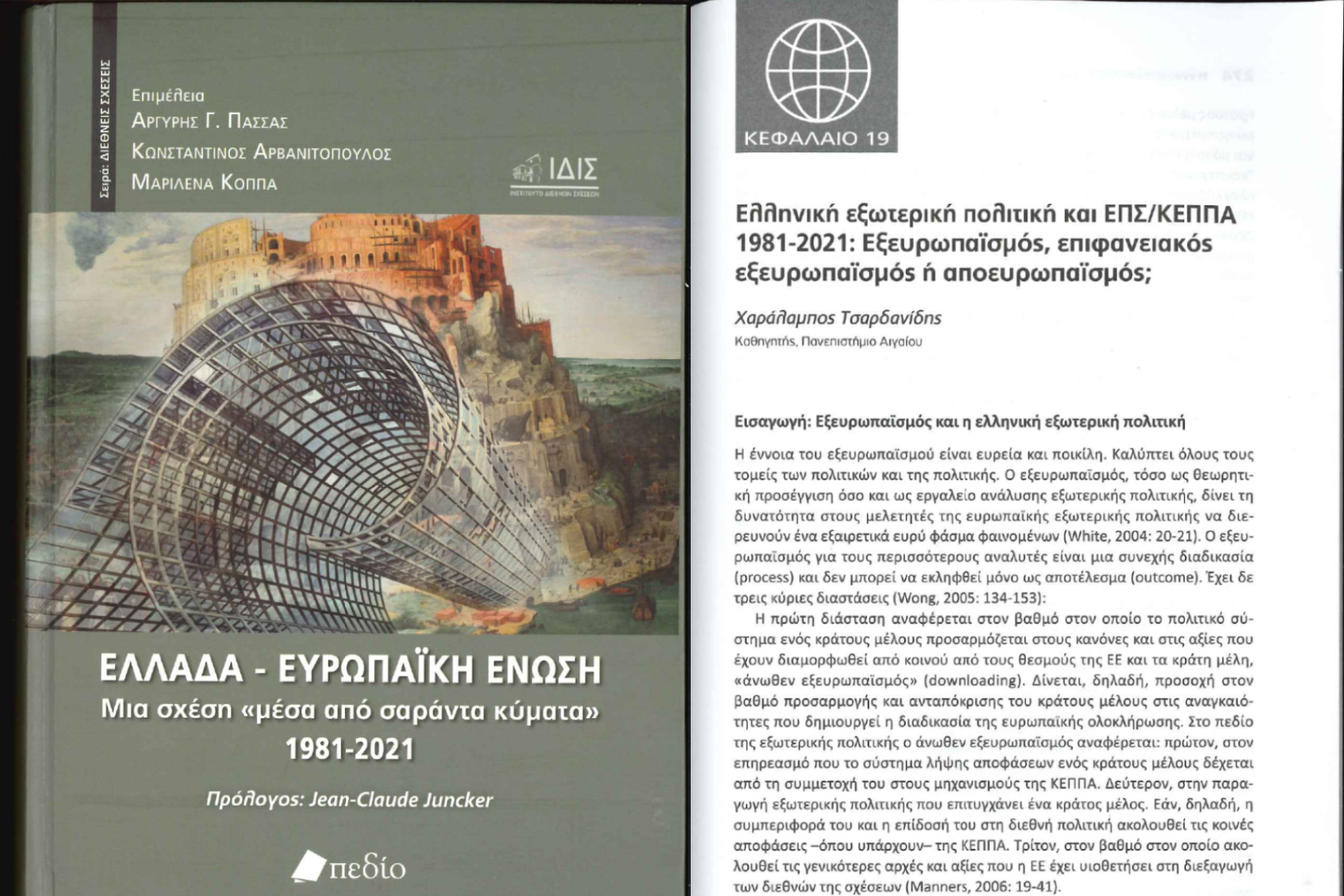 Συμμετοχή του Διευθυντή του ΙΔΟΣ και καθηγητή στο Αιγαίο Πανεπιστήμιο  (Τμήμα Μεσογειακών Σπουδών) κ.  Χαράλαμπου Τσαρδανίδη  στον επετειακό  συλλογικό τόμο Ελλάδα – Ευρωπαϊκή Ένωση. Μια σχέση «μέσα από σαράντα κύματα» 1981-2021 που επιμελήθηκαν οι Αργύρης Πασσάς, Κωνσταντίνος Αρβανιτόπουλος και Μαριλένα Κοππά.