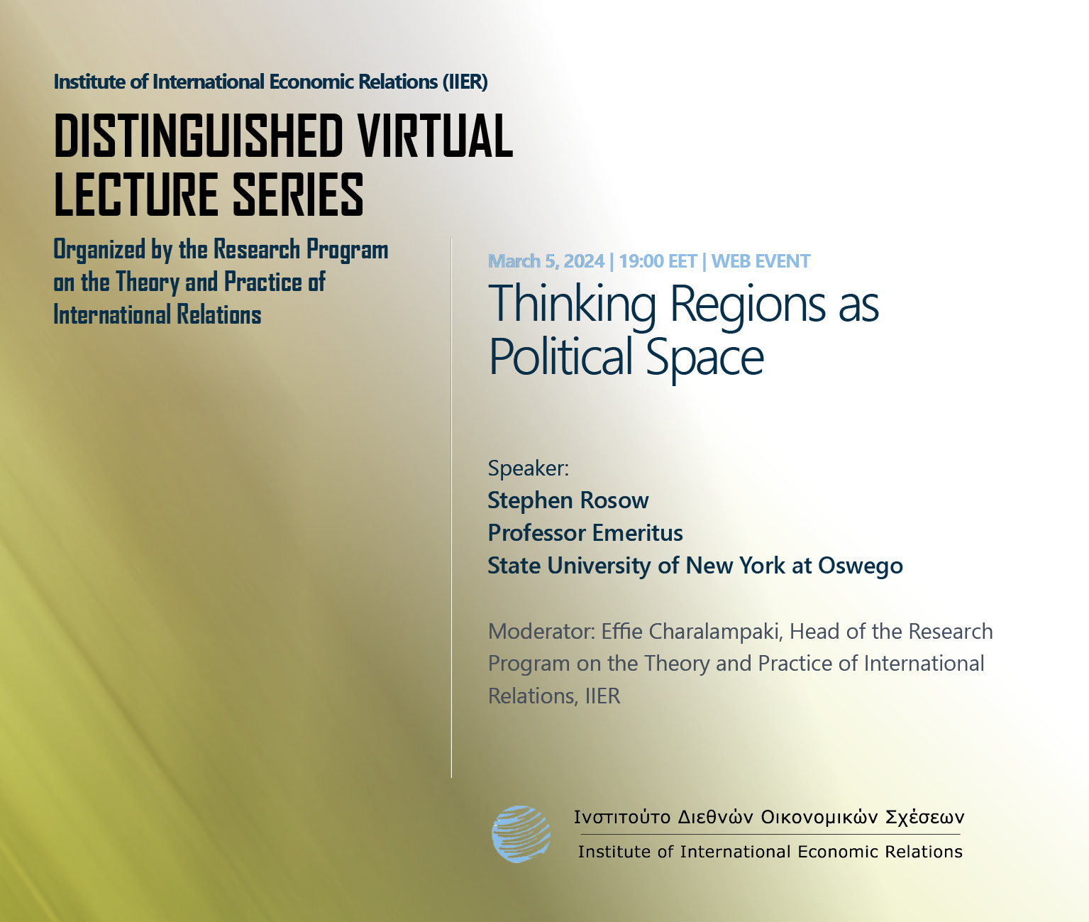 The Research Program on the Theory and Practice of International Relations at the Institute of International Economic Relations (IIER), Athens, Greece organizes The IIER Distinguished Virtual Lecture Series, that aims to delve into the rich and diverse scholarship in the field of International Relations (IR) by featuring prominent theorists and brilliant speakers from around the world who have made important contributions to the field.