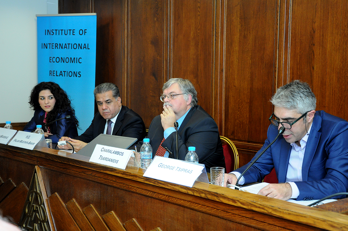 Στην παρέμβασή του, ο κ. Γενικός Γραμματέας Διεθνών Οικονομικών Σχέσεων του Υπουργείου Εξωτερικών κ. Γεώργιος Τσίπρας αναφέρθηκε στις δυνατότητες δραστηριοποίησης των ελληνικών επιχειρήσεων στο Βόρειο Ιράκ. Παρέθεσε, επίσης, ενδεικτικούς τομείς, στους οποίους υπάρχουν ευκαιρίες και προοπτικές, δεδομένου ότι οι δύο οικονομίες μπορούν να λειτουργήσουν συμπληρωματικά, όπως στους τομείς της πετρελαιοβημηχανίας, της γεωργίας και του τουρισμού. Οι ελληνικές επιχειρήσεις θα μπορούσαν να συμβάλλουν στην ανάπτυξη της Περιοχής, δεδομένης της εμπειρίας τους πάνω στους συγκεκριμένους τομείς. Ο κ. Γ. Τσίπρας τόνισε, επίσης, ότι η συγκεκριμένη περιοχή είναι πλούσια σε κοιτάσματα πετρελαίου, ενώ λόγω της γεωγραφικής της θέσης έχει καταστεί εμπορικός κόμβος, γνωρίζοντας αξιοσημείωτη ανάπτυξη τα τελευταία χρόνια. Η περιοχή, επίσης, λόγω των σημαντικών αρχαιολογικών τοποθετήσεων της περιοχής μπορεί να προσελκύσει αρκετούς τουρίστες. Ο Γενικός Γραμματέας Δ.Ο.Σ. διαβεβαίωσε τους παρευρισκόμενους ότι το Υπουργείο Εξωτερικών και η Γενική Γραμματεία Διεθνών Οικονομικών Σχέσεων στηρίζουν τις προσπάθειες προώθησης της οικονομικής και εμπορικής συνεργασίας με την Αυτόνομη Περιφέρεια του Ιρακινού Κουρδιστάν, με την Κεντρική Κυβέρνηση του Ιράκ, αλλά και με την ευρύτερη περιοχή της Μέσης Ανατολής. Τέλος, δε επισήμανε δε την υψηλή αξιοπιστία του κουρδικού παράγοντα στη μάχη κατά του ISIS φέροντας σαν παράδειγμα και τη μάχη του Kobane.