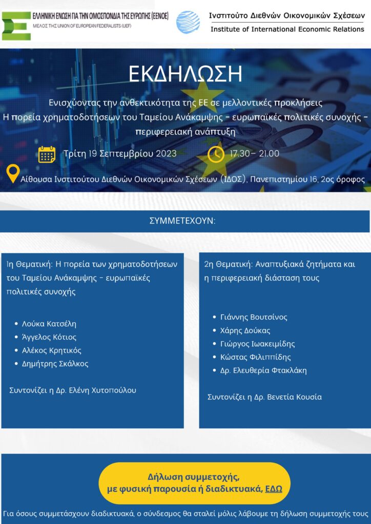 Η πορεία χρηματοδοτήσεων του Ταμείου Ανάκαμψης – ευρωπαϊκές πολιτικές συνοχής – περιφερειακή ανάπτυξη