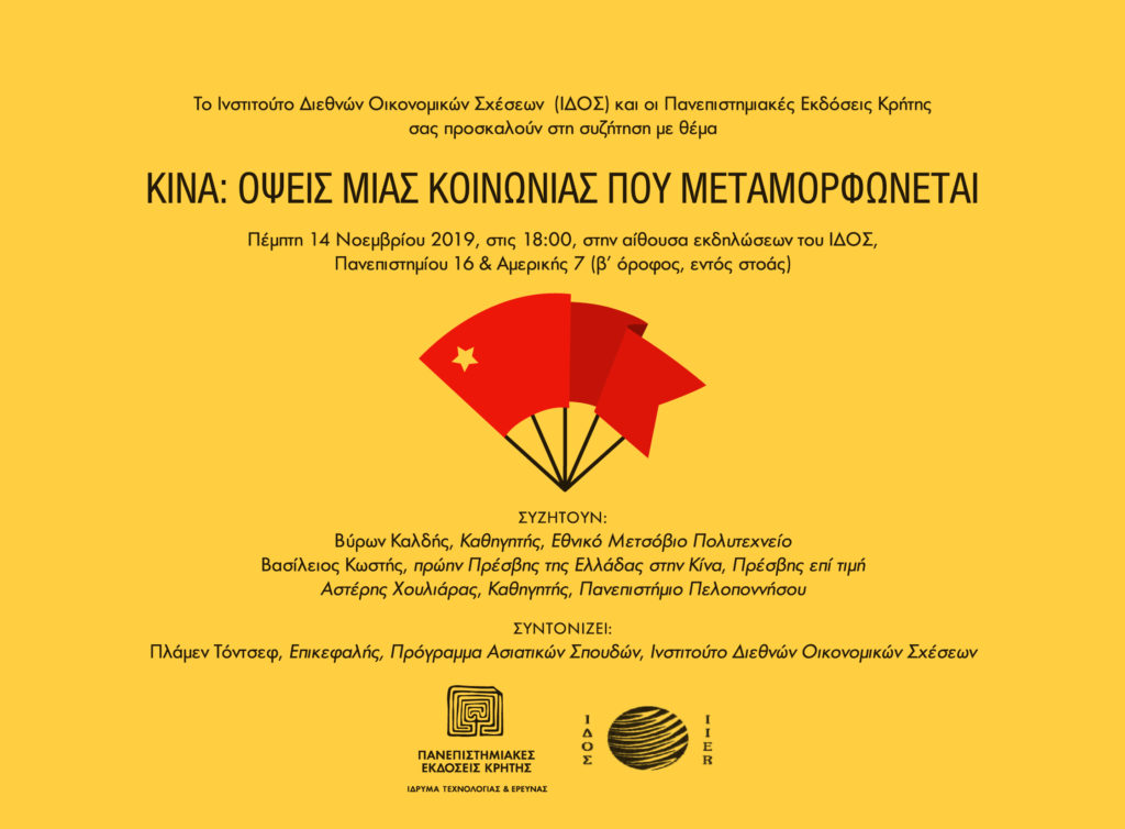 Μια εμπεριστατωμένη συζήτηση για την Κίνα, μια κοινωνία που μεταμορφώνεται από το ΙΔΟΣ @idosiier με αφορμή την παρουσίαση του βιβλίου του Έβαν Όσνος, “Η Εποχή της Φιλοδοξίας…”, από τις Πανεπιστημιακές Εκδόσεις Κρήτης.