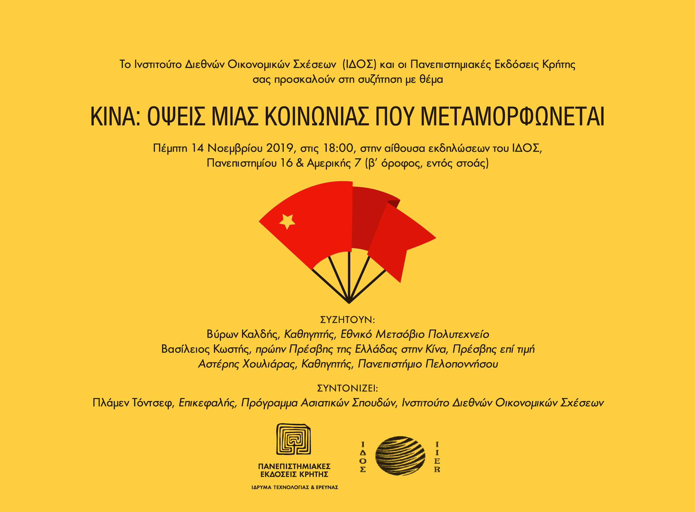Μια εμπεριστατωμένη συζήτηση για την Κίνα, μια κοινωνία που μεταμορφώνεται από το ΙΔΟΣ @idosiier με αφορμή την παρουσίαση του βιβλίου του Έβαν Όσνος, “Η Εποχή της Φιλοδοξίας…”, από τις Πανεπιστημιακές Εκδόσεις Κρήτης.