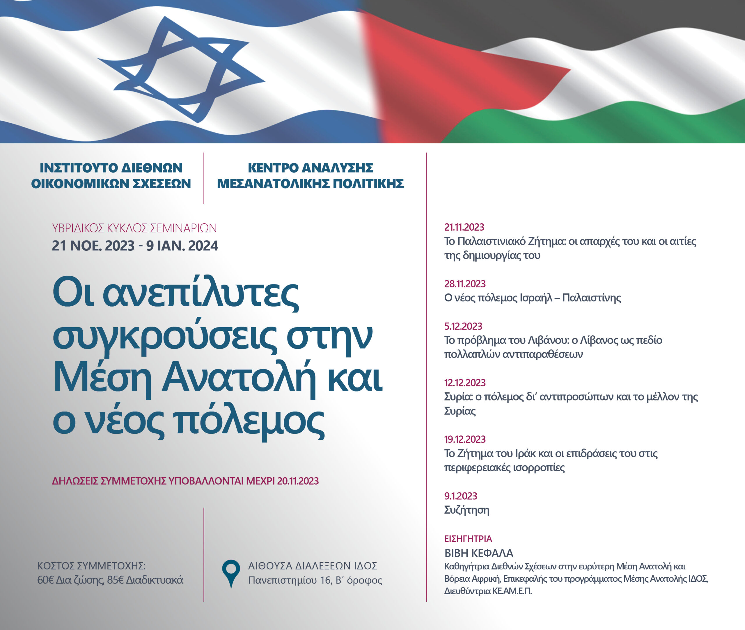Κύκλος σεμιναρίων: Οι ανεπίλυτες συγκρούσεις στην Μέση Ανατολή και ο νέος πόλεμος