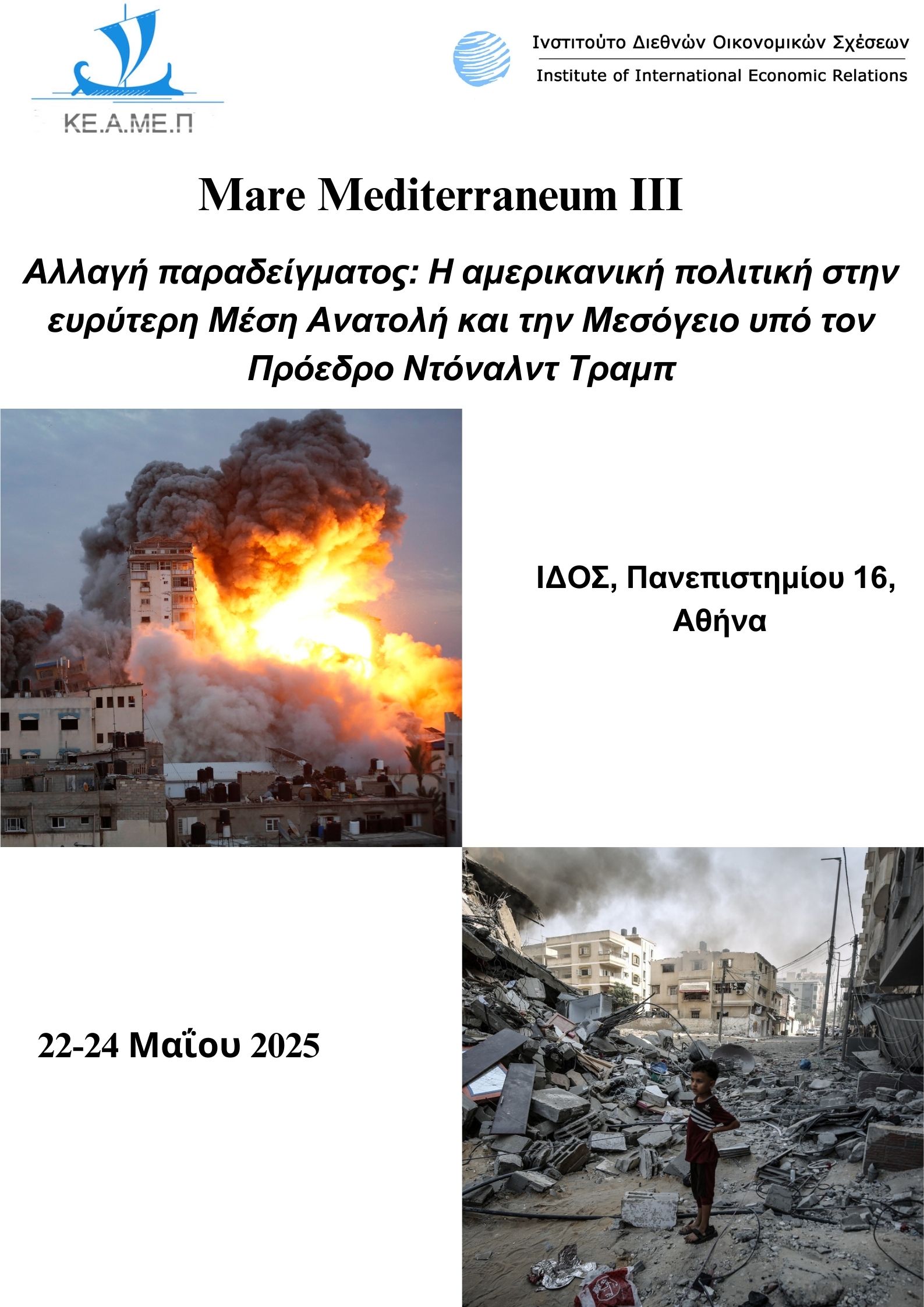 Το Συνέδριο διοργανώνεται από το Κέντρο Ανάλυσης Μεσανατολικής Πολιτικής (ΚΕΑΜΕΠ) και το Ινστιτούτο Διεθνών Οικονομικών Σχέσεων (ΙΔΟΣ)